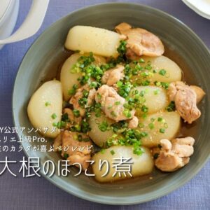 鶏大根のほっこり煮 材料(2人分) 大根 300g 鶏もも肉 200g おろし生姜 小さじ1 酒 大さじ1 塩 少々 葉ネギ 3本 すりごま 適量 太白ごま油 大さじ1 出汁 150cc しょうゆ 大さじ1 砂糖 大さじ1.5 みりん...