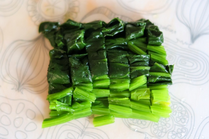 ・水気を絞ったホウレン草を1cm幅に切る。