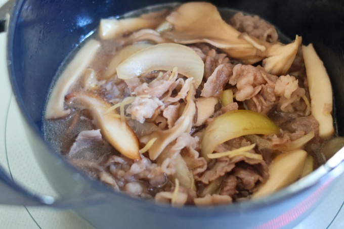 ・煮汁が軽く沸いてきたら牛肉を加え3~4分弱火で煮る。