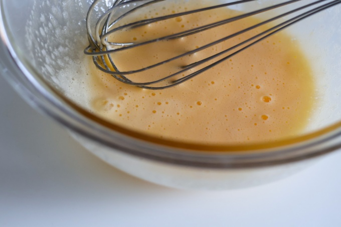 ・大きめのボウルに卵と砂糖を入れて白っぽくなるまでホイッパーでよく混ぜる。