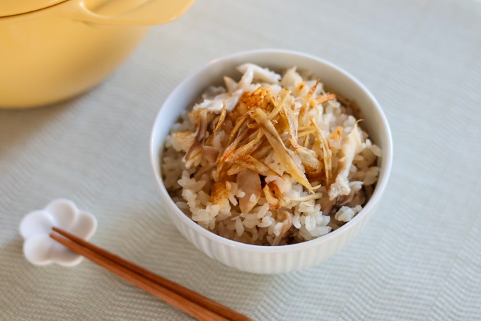 ごぼうの2つの食感が楽しめる炊き込みごはんです。ごぼうの旨味と鶏肉の相性も抜群!